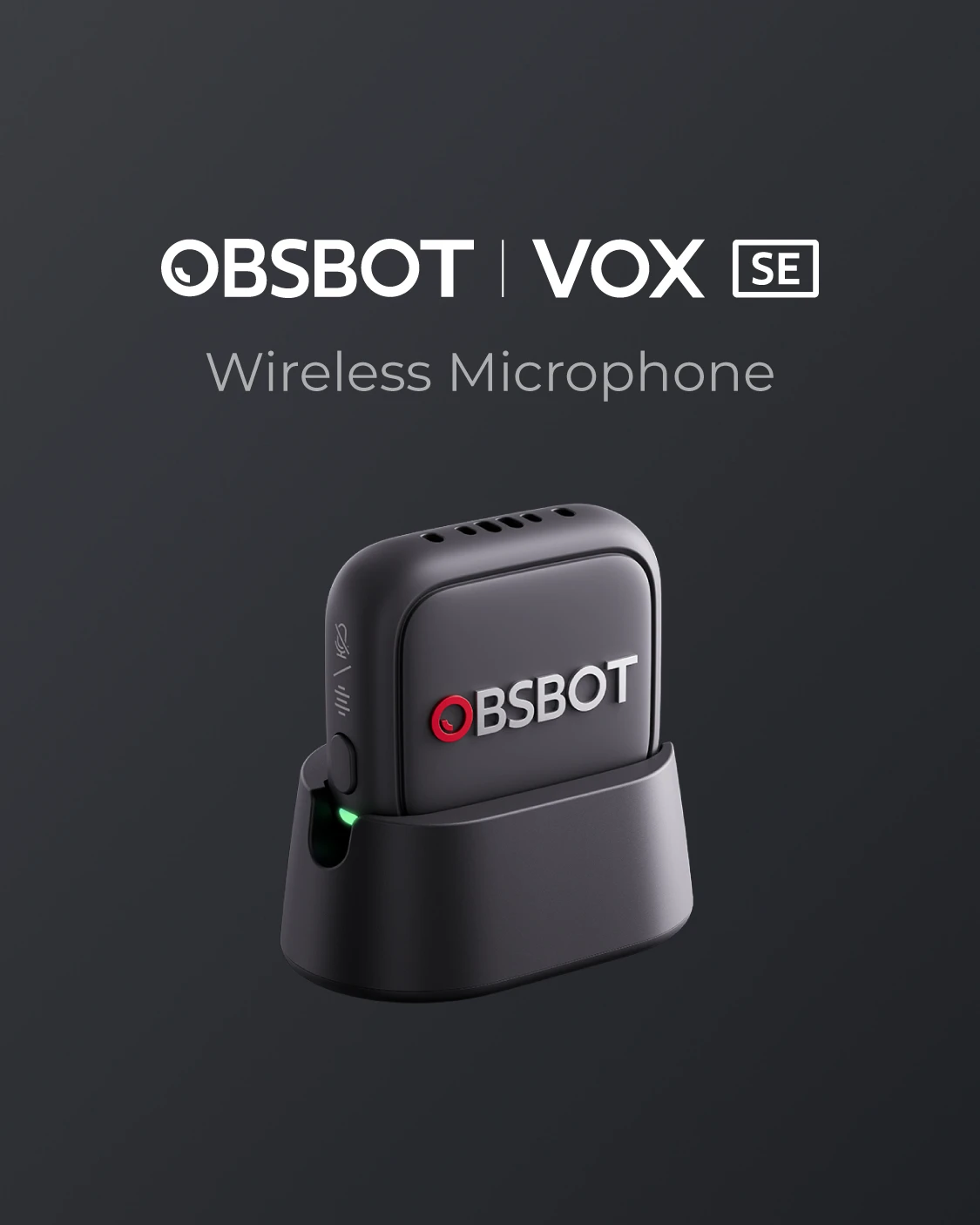 OBSBOT Vox SE es un micrófono inalámbrico diseñado para Tiny 3 y Tiny 3 Lite que ofrece una calidad de audio superior y un rango ampliado de captura de voz. A través del software OBSBOT, puedes cambiar entre los modos de cancelación de ruido y usar el botón de función para controlar la webcam fácilmente, permitiéndote moverte con libertad, mantenerte enfocado y crear sin interrupciones.